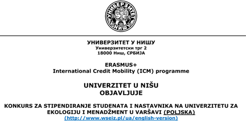 КОНКУРС ERASMUS+ ПРОГРАМА УНИВЕРЗИТЕТА У НИШУ ЗА