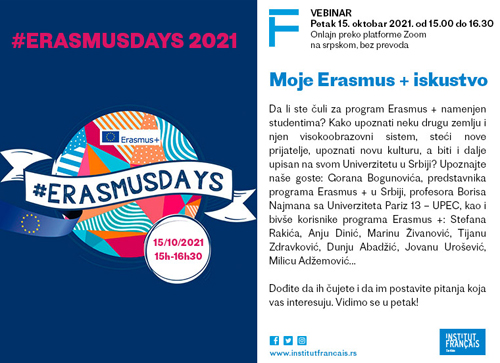 У оквируErasmus days“ Француски институт у Србији организује: